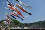 奥大山春の風物詩。久連橋(くればし)、夜振橋(よぶりばし)で元気いっぱい泳ぐこいのぼり!