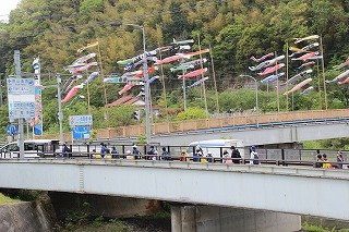 ▲沿道にはゴールデンウィークの江府町名物「こいのぼり」も泳いでます。
