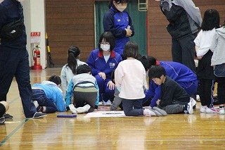 ▲「拍手のリレー」でチームワークをチェック。うまくいったら、みんなが笑顔で喜びの拍手喝采。イエ~イ。