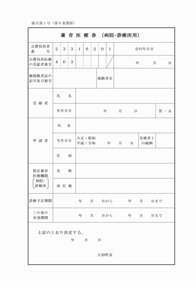 第6条 町長は、前条の申請書の提出があったときは、その内容を審査し、養育医療の給付の可否を決定するものとする。